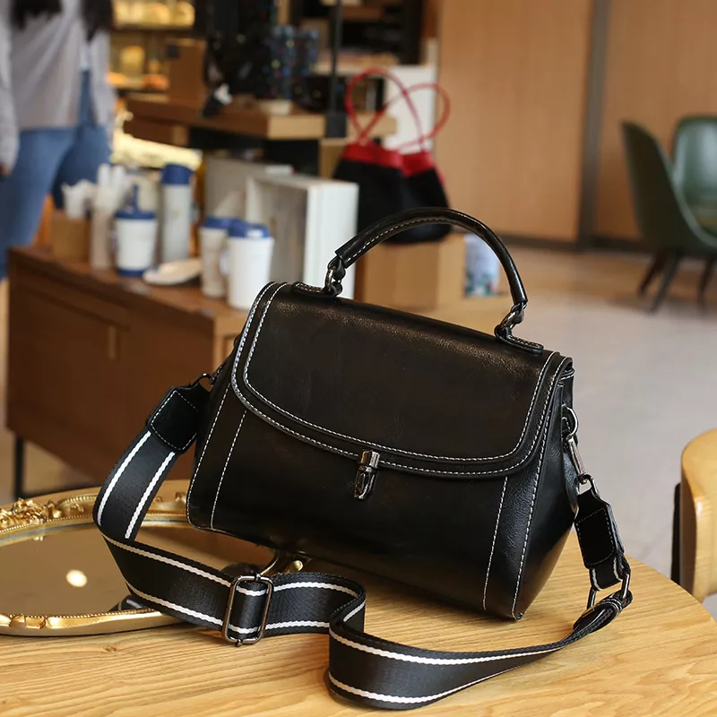 Made from 100% genuine cowhide leather, this bag exudes a rich texture and natural durability, making it a long-lasting addition to your wardrobe. The soft yet structured design ensures a comfortable feel while maintaining its elegant shape. A secure hasp closure adds a touch of refinement while keeping your belongings safe.
