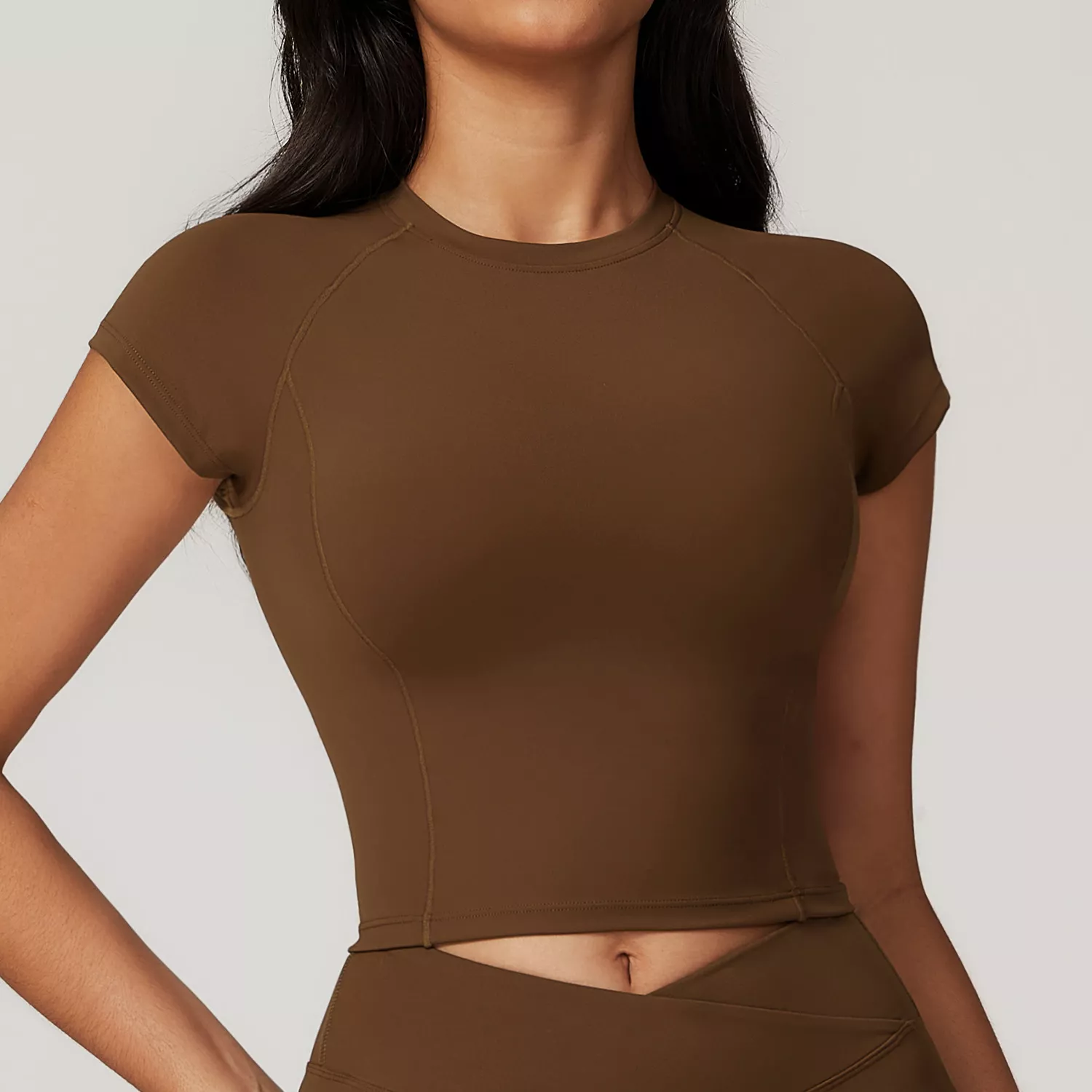 Engineered for active women, this fitness top features a moisture-wicking fabric that keeps sweat at bay while offering a sleek, form-fitting silhouette. Its short sleeves provide unrestricted movement, making it an essential piece for every workout wardrobe.