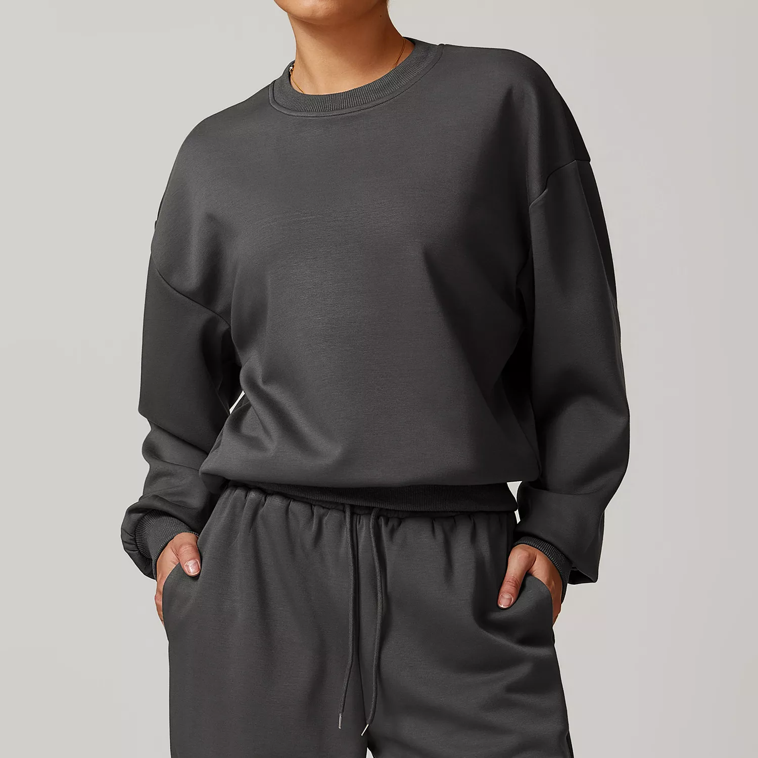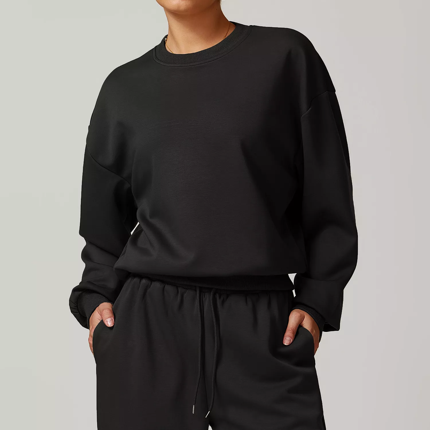 This lightweight sweatshirt is great for transitional weather, offering just the right amount of warmth without feeling heavy. Whether you’re stretching before a workout, heading out for a brisk walk, or pairing it with your favorite leggings for a laid-back weekend, this top will quickly become your go-to choice.