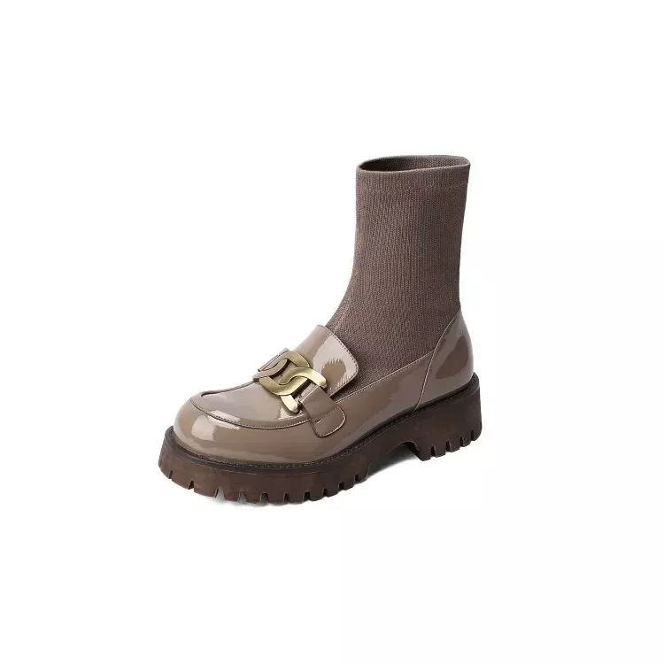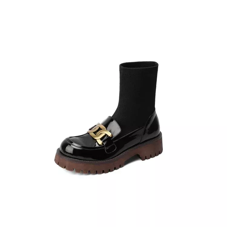 Step into sophistication with these modern, patent leather women’s boots that bring together style, comfort, and durability. Featuring a round toe and a chunky heel, these boots are perfect for adding a touch of edge to any outfit, whether you’re heading to work, out for a night on the town, or enjoying a day of shopping. The sleek, shiny finish of the patent leather gives them a polished, luxurious look, while the slip-on design offers ease and comfort all day long.