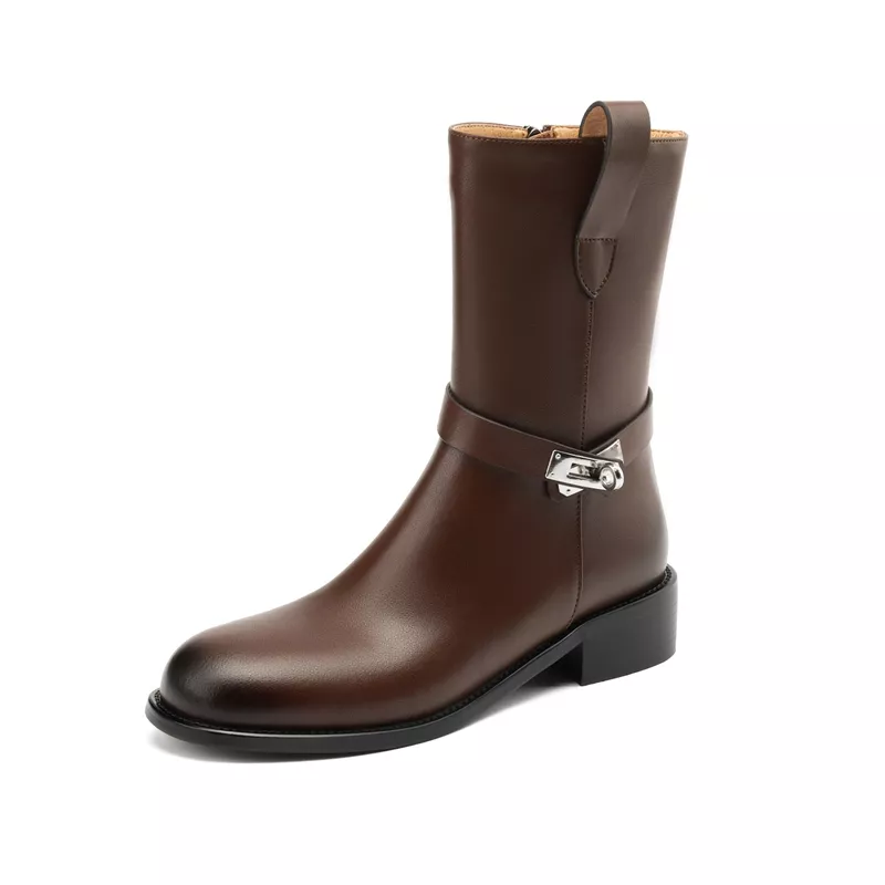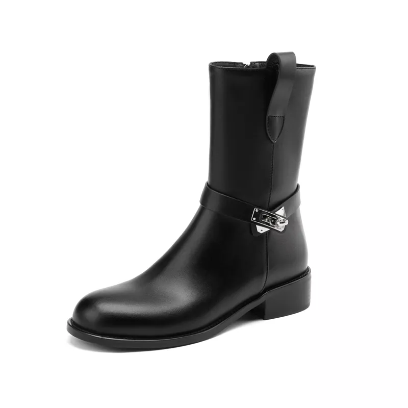 Whether you’re heading out for a motorcycle ride, running errands, or simply looking to add a bit of edge to your wardrobe, these boots are the perfect choice. The classic round toe and sturdy heel ensure that you can move confidently, while the metal belt buckle adds an extra layer of modern flair. Crafted with attention to detail, they provide not only a statement look but also unmatched comfort during colder months.