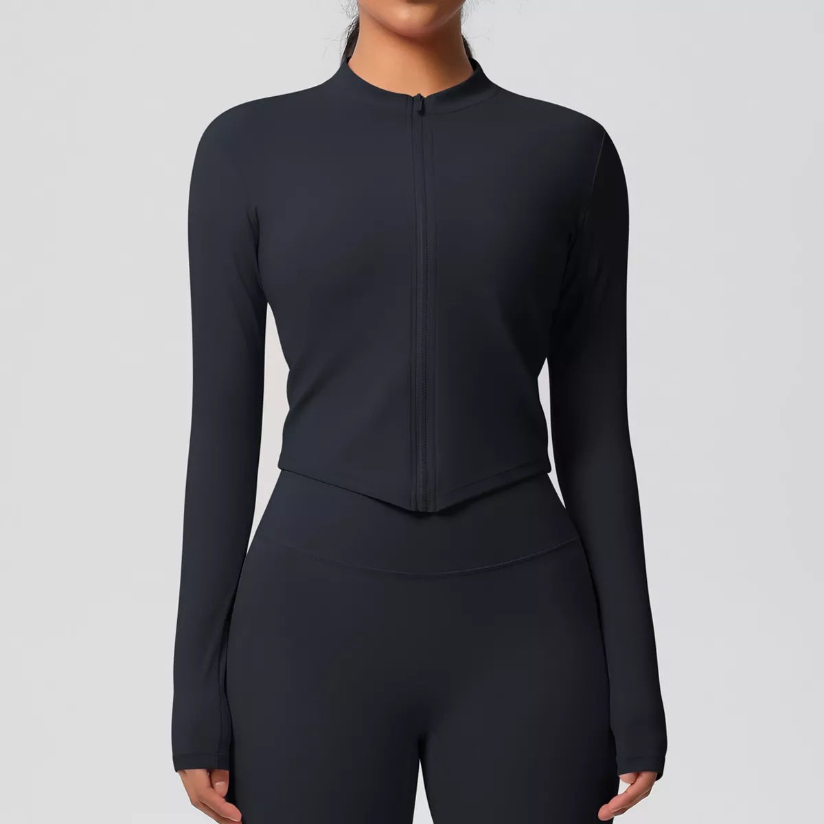 Elevate your workout wardrobe with the Women’s Zipper Sports Jacket, designed for both performance and style. Whether you’re stretching in yoga, hitting the gym, or going for a run, this long-sleeved crop top offers the perfect blend of comfort, breathability, and support. With a sleek, body-hugging fit and a high-quality fabric blend, it keeps you feeling confident and ready to move. The windproof design ensures that you stay warm while training outdoors, while its quick-drying properties keep you cool and comfortable.